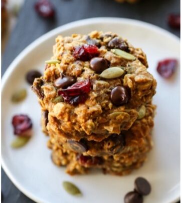 This recipe is divine! It’s fiber-filled with rolled oats, chia seeds and pumpkin puree. I love